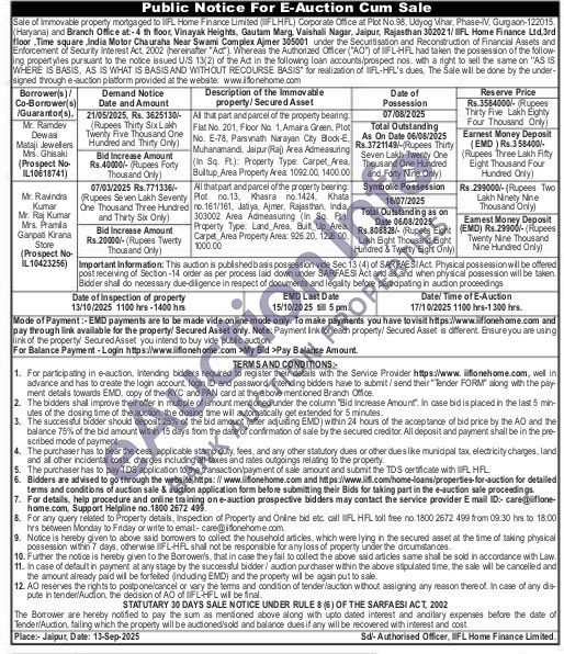 All that part and parcel of the property bearing Flat No. 201 Floor No 1, Amaira Green, Plot No. E-78, Parsvnath Narayan City Block-E Muhanamandi, Jaipur (Raj) Area Admeasuring (In Sq. Ft): Property Type: Carpet Area. Bultup, Area Property Area 1092.00, 1400.00