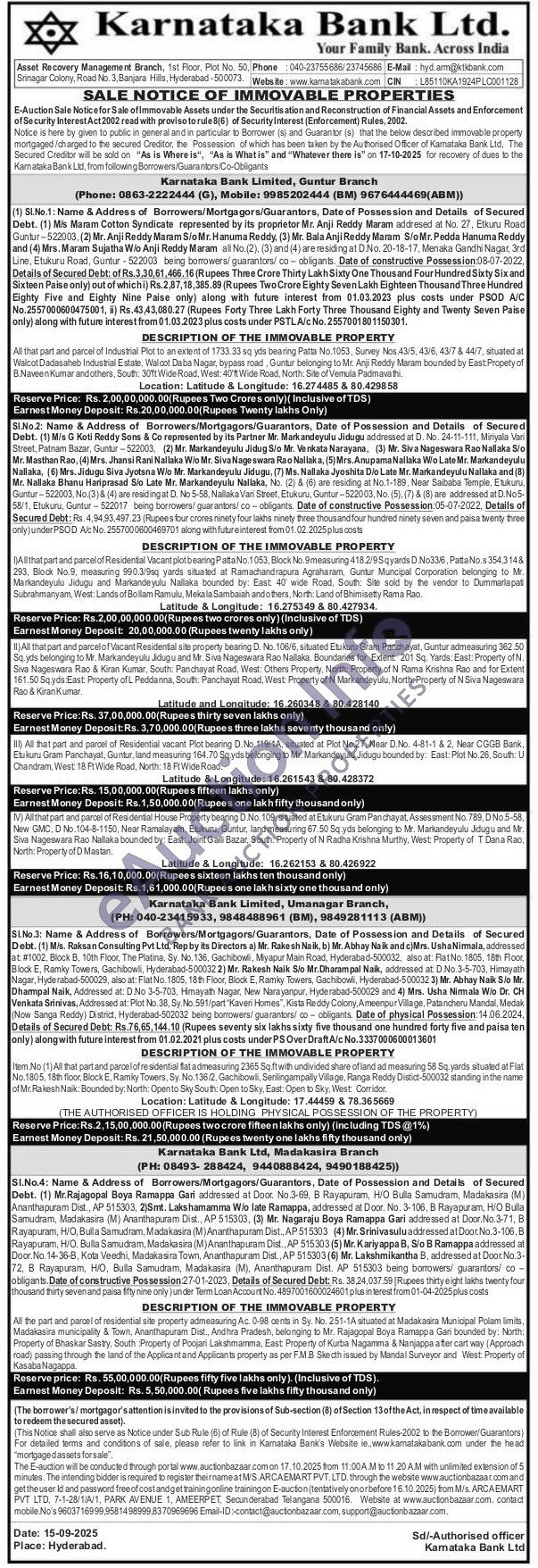 DESCRIPTION OF THE IMMOVABLE PROPERTY : All the part and parcel of residential site property admeasuring Ac. 0-98 cents in Sy. No. 251-1A situated at Madakasira Municipal Polam limits, Madakasira municipality & Town, Ananthapuram Dist., Andhra Pradesh, belonging to Mr. Rajagopal Boya Ramappa Gari bounded by: North: Property of Bhaskar Sastry, South :Property of Poojari Lakshmamma, East: Property of Kurba Nagamma & Nanjappa after cart way (Approach road) passing through the land of the Applicant and Applicants property as per F.M.B Skecth issued by Mandal Surveyor and West: Property of Kasaba Nagappa