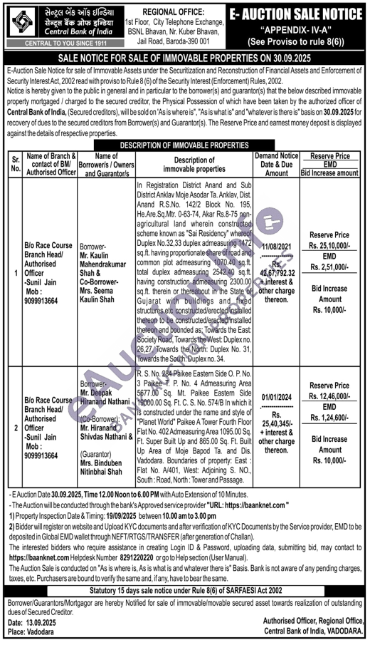 In Registration District Anand and Sub District Anklav Moje Asodar Ta. Anklav, Dist. Anand R.S.No. 142/2 Block No. 195, He.Are. Sq.Mtr. 0-63-74, Akar Rs.8-75 non-agricultural land wherein constructed scheme known as "Sai Residency" whereof Duplex No.32,33 duplex admeasuring 1472 sq.ft. having proportionate share of road and common plot admeasuring 1070.40 sq.ft. total duplex admeasuring 2542.40 sq.ft. having construction admeasuring 2300.00 sq.ft. therein or thereabout in the State of Gujarat with buildings and fixed structures.etc constructed/erected/installed thereon to be constructed/erected/installed thereon and bounded as: Towards the East: Society Road, Towards the West: Duplex no. 26,27, Towards the North: Duplex No. 31, Towards the South: Duplex no. 34