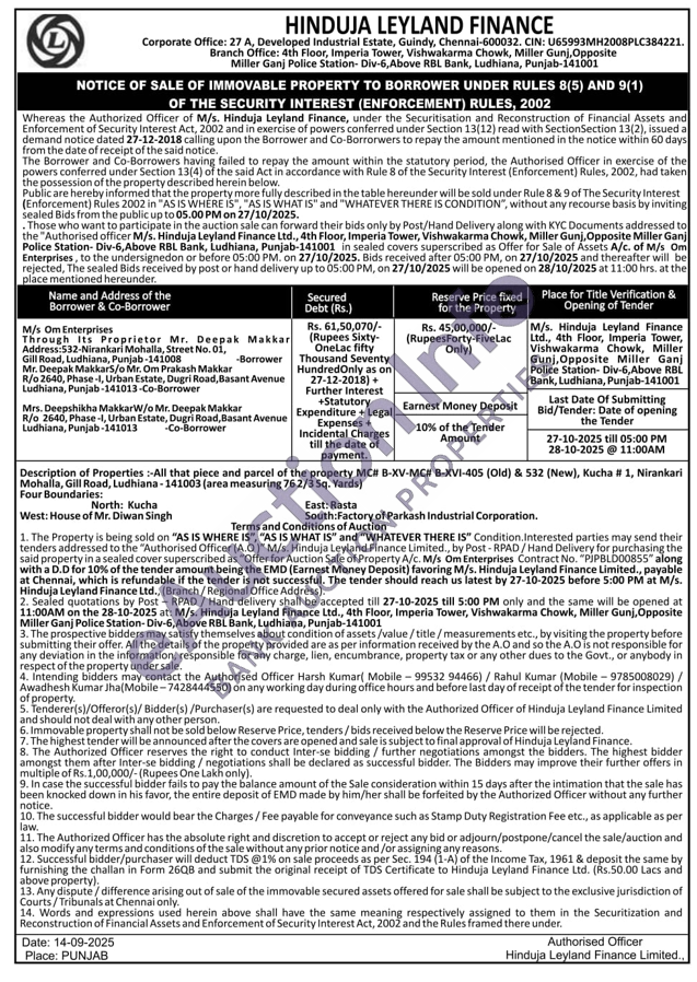 All that piece and parcel of the property MC# B-XV-MC# B-XVI-405 (Old) & 532 (New), Kucha # 1, Nirankari Mohalla, Gill Road, Ludhiana-141003 (area measuring 76 2/3 Sq. Yards) Four Boundaries: