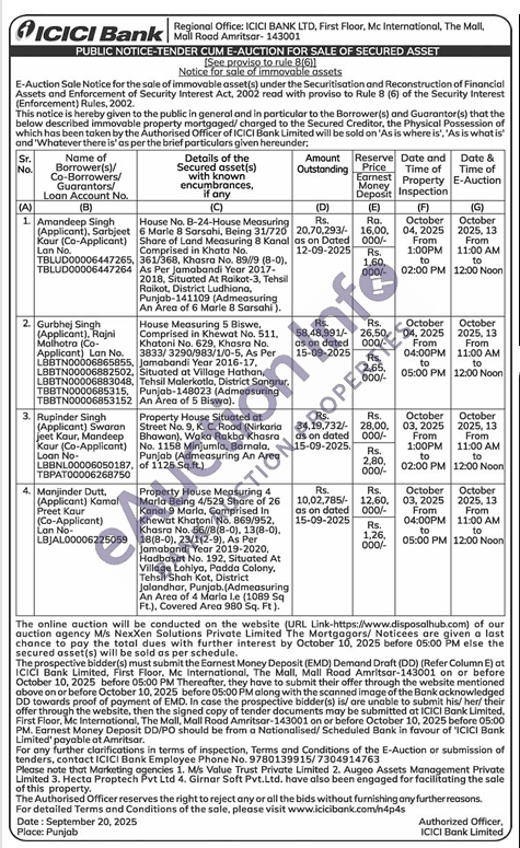 House No. 8-24-House Measuring 6 Marie 8 Sarsahi, Being 31/720 Share of Land Measuring 8 Kanal Comprised in Khata No. 361/368, Khasra No. 89/19 (8-0). As Per Jamabandi Year 2017-2018, Situated At Raikot-3, Tehsil Raikot, District Ludhiana, Punjab-141109 (Admeasuring An Area of 6 Marie 8 Sarsahi).