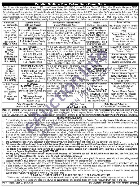 All that part and parcel of the property bearing DDA Built Up Freehold Flat No. 176, on Third Floor, under LIG Category, in Pocket-H, Group 2, Sector B-2, Narela, New Delhi, 110040. Area Admeasuring (IN SQ. FT.): Property Type: Area Admeasuring Property Area: 452.00