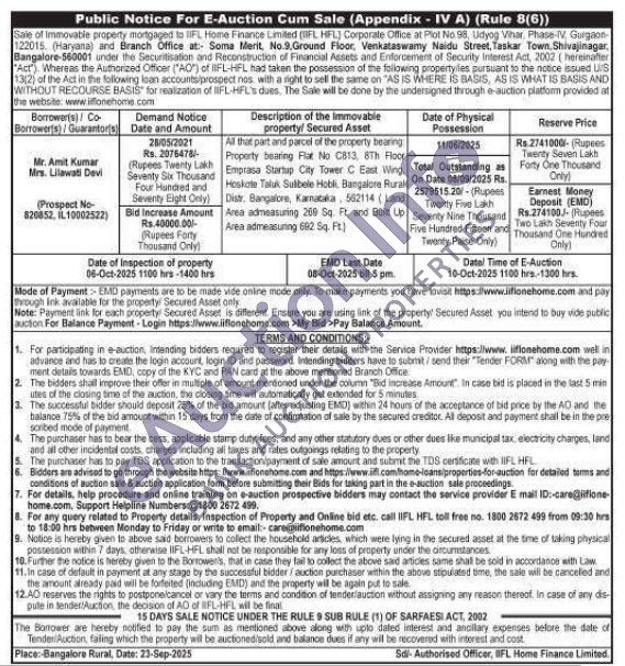All that part and parcel of the property bearing Property bearing Plot No C813, 8Th Floor Emprasa Startup City Tower C East Wing. Hoskate Taluk Sulibele Hobki, Bangalore Rural Distr, Bangalore, Karnataka, 562114 (Land Area admeasuring 260 Sq. Ft. and Built Up Area admeasuring 692 Sq. Ft)