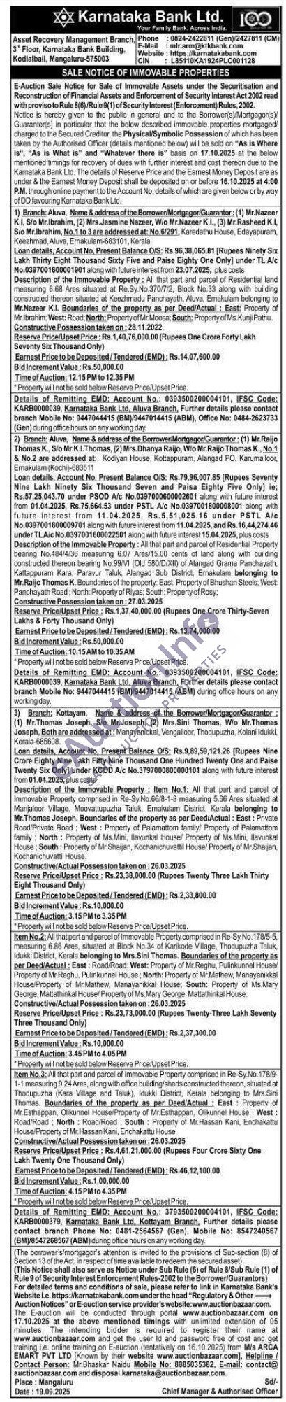 All that part and parcel of Residential Property bearing No.484/4/36 measuring 6.07 Ares/15.00 cents of land along with building constructed thereon bearing No.99/VI (Old 580/D/XII) of Alangad Grama Panchayath, Kattappuram Kara, Paravur Taluk, Alangad Sub District, Ernakulam belonging to Mr.Raijo Thomas K. Boundaries of the property: East: Property of Bhushan Steels: West: Panchayath Road, North: Property of Riyas, South: Property of Rosy,