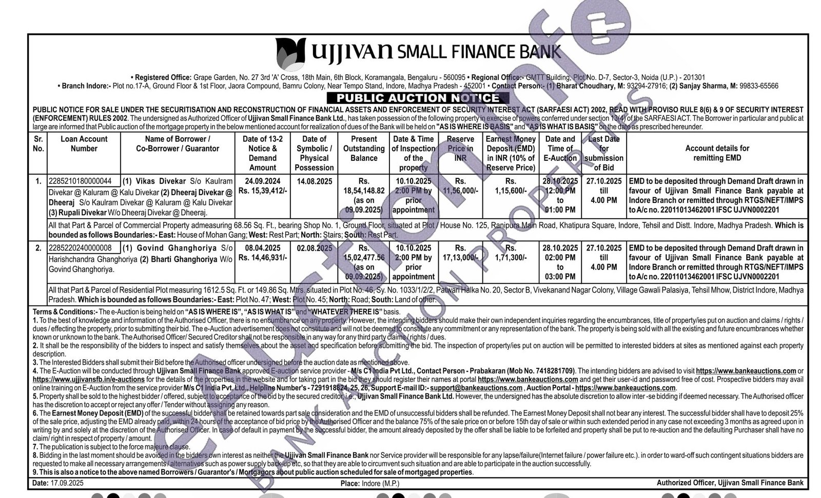 All that Part & Parcel of Residential Plot measuring 1612.5 Sq. Ft. or 149.86 Sq. Mtrs, situated in Plot No. 46, Sy. No. 1033/1/2/2, Patwari Halka No. 20, Sector B, Vivekanand Nagar Colony, Village Gawali Palasiya, Tehsil Mhow, District Indore, Madhya Pradesh. Which is bounded as follows Boundaries:- East: Plot No. 47, West: Plot No. 45; North: Road; South: Land of other.