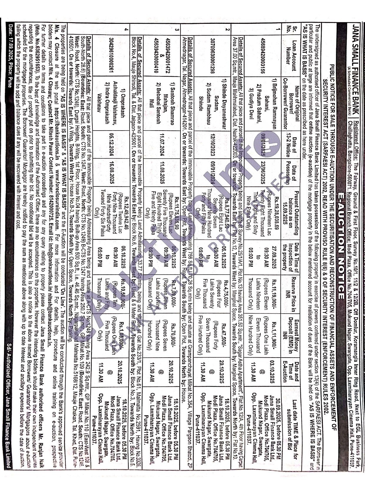 Details of Secured Assets: All that piece and parcel of the Immovable Property being and situate at Survey No.25/1/A/1, Plot No. 13 having Area 351.50 Sq.mtr., "Sagar Astha Apartment", Fiat No.12/A, 4th Floor having Carpet Area 37.00 Sq.mtr., Mauje Makhmalabad, Dist. Nashik-422003. On or towards: Towards East by: Flat No. 12, Towards West by: Marginal Space, Towards South by: Marginal Space, Towards North by: Flat No.10.