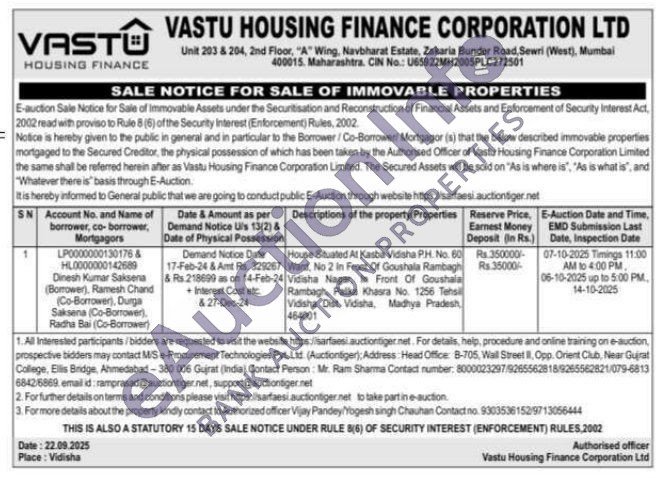 House Situated At Kasba Vidisha PH. No. 60 Ward, No 2 In Front Of Goushala Rambagh Vidisha Nagar, In Front Of Goushala Rambagh, Palika Khasra No. 1256 Tehsil Vidisha Dist Vidisha, Madhya Pradesh 464001