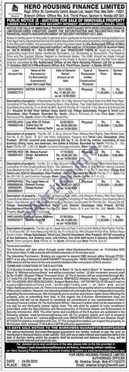 Description of property: A Residential Flat No. SI-3, Mig. Second Floor Back Side (rhs) With Roof Right. Consisting Of Two Bedrooms One Drawing Room, One Kitchen, Two Tollet Bathroom And One Balcony. Area Measuring 534 So, File 49.60 Sq Mtrs. Built On Plot No. B-114/a & B-114/b, Block-b And Khasra No 221. Situated At Rail Vihar Sehkari Awas Samiti Ltd, Village Sadullabad, Pargan & Tehsil Loni Ghaziabad, Uttar Pradesh. Bounded By: North: Other's Plot/road 25 Feet Wide East: Other's Plot vacant Plot, South: Other's Plot West: Vacant Plot
