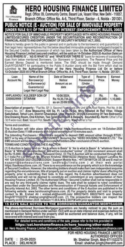 Fal No. SF-3, Second Floor, Back Lhs Unit With Roof Rights, Plot No. A 99 Khasra No. 347, Area Measuring 428 Sq. Ft. Le 39.76 Sq. Mtra Situated At Rail Vihar, Village Sadullabad, Tehsil Loni, District Ghaziabad, Uttar Pradesh-201102 Consisting Of Two Bedrooms, One Drawing Room, One Kitchen, Two Toilet Bathroom & Balcony. Bounded By-North: Other's Plat 30 ft wide road, East: Vacant Plot, South: Other's Property, West: Other's Flat
