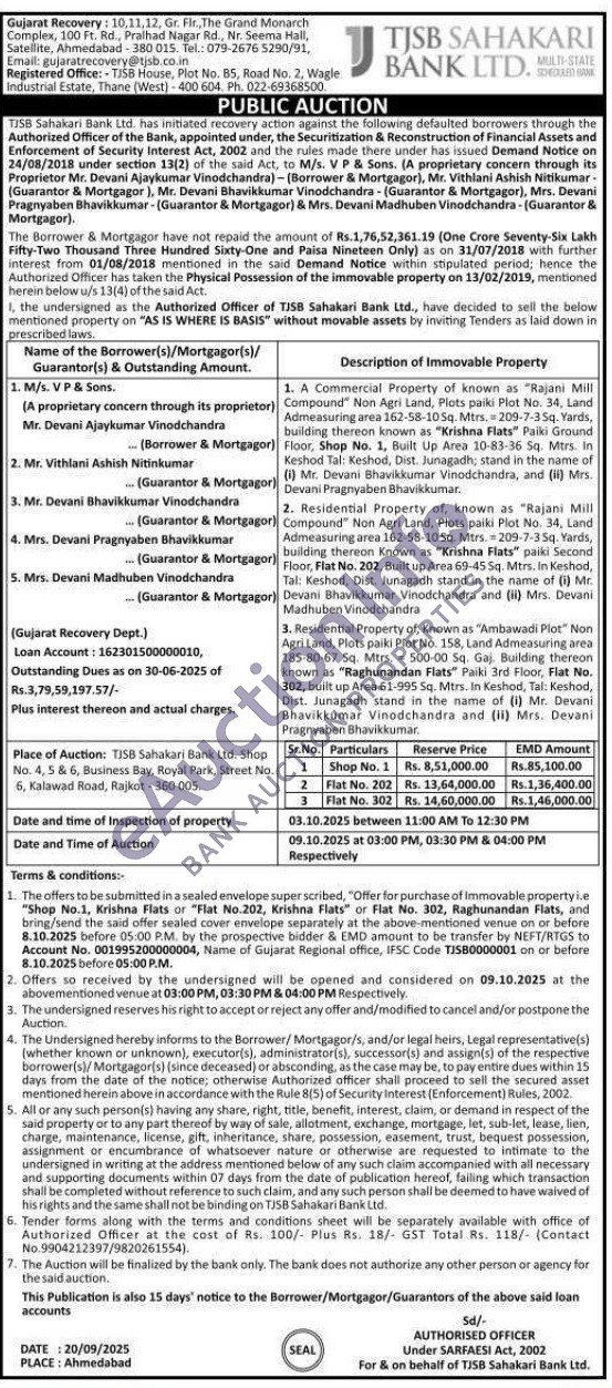 2. Residential Property of, known as "Rajani Mill Compound Non Agri Land, Plots paiki Plot No. 34, Land Admeasuring area 162-58-1054. Mtrs. 209-7-35q. Yards, building thereon Known as "Krishna Flats" paiki Second Floor, Flat No. 202, Built up Area 69-45 Sq. Mtrs. In Keshod, Tal: Keshod, Dist. Junagadh stand in the name of (1) Mr. Devani Bhavikkumar Vinodchandra and (il) Mrs. Devani Madhuben Vinodchandra