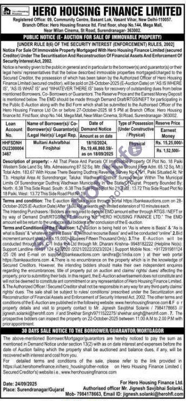 Description of property: All That Piece And Parcels Of Immovable Property Of Plot No. 18 Paik Western Side Land Sq. Mts. Admeasuring 87.52 Sq. Mtr. (said House Ground Floor Adm. 65.12 Sq. Mt Total Adm. 183.67 With House There Bearing Dudhraj Revenue Survey No.475/1, Paiki Situated At. Nr Tb. Hospital Ares At Surendrangar, Taluka: Wadhwan, District: Surendrangar Within The Municipal Limits Of Surendrangar Dudhraj Wadhwan Municipality in The State Of Gujrat Property Bounded By: North: 6.38 This Side Road South: 6.38 This Side Road Plot No 21, East: 13.72 This Side Road Plot No 18 Paiki, West: 13.72 This Side Road Plal No 19