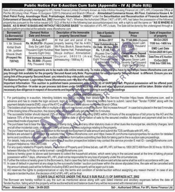 All that part and parcel of the property bearing Flat No A-903. 9th Floor, Block A. Stavan Avisha. admeasuring-1998 sq.ft.) Near Seema Hall, Prahaladnagar Mouje Jodhpur, Ahmedabad. Gujarat, 380015 (Area