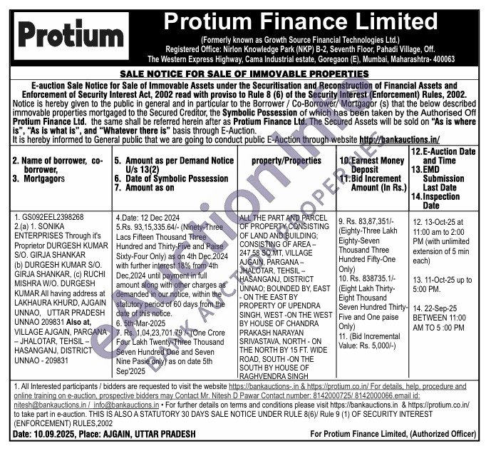 ALL THE PART AND PARCEL OF PROPERTY CONSISTING OF LAND AND BUILDING; CONSISTING OF AREA-247.58 SQ.MT, VILLAGE AJGAIN, PARGANA-JHALOTAR, TEHSIL -HASANGANJ, DISTRICT UNNAO, BOUNDED BY, EAST -ON THE EAST BY PROPERTY OF UPENDRA SINGH, WEST-ON THE WEST BY HOUSE OF CHANDRA PRAKASH NARAYAN SRIVASTAVA, NORTH-ON THE NORTH BY 15 FT. WIDE ROAD, SOUTH-ON THE SOUTH BY HOUSE OF RAGHVENDRA SINGH