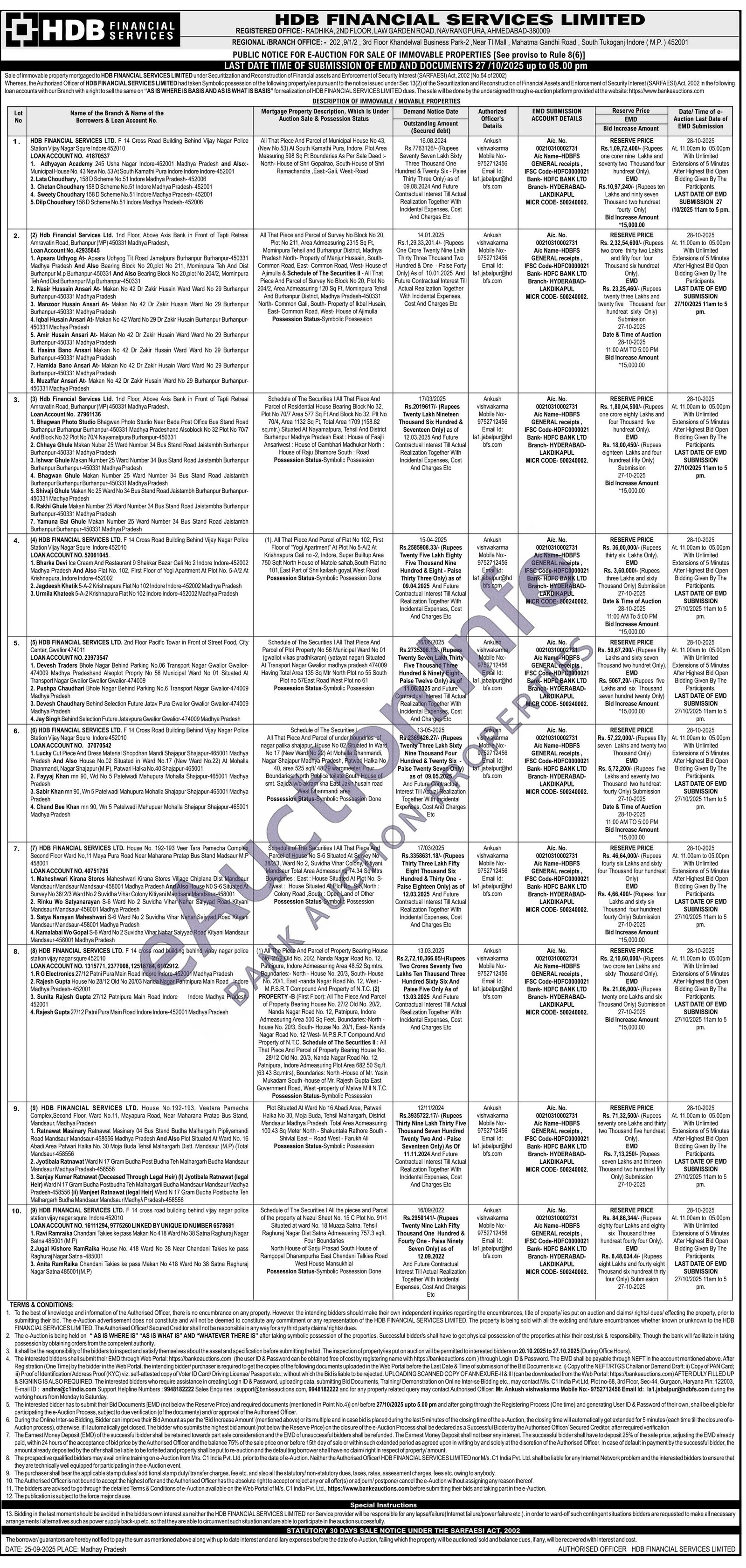 Schedule of The Securities I : All That Piece And Parcel of under boundries of nagar palika shajapur, House No 02 Situated In Ward No 17 (New Ward No 22) At Mohalla Dhanmandi, Nagar Shajapur Madhya Pradesh, Patwari Halka No 40, area 525 sqft/ 48.79 wargmeeter, Four Boundaries: North Publice toilate South House of smt. Sajida w/o akram kha East Jakir husain road West Dhanmandi area