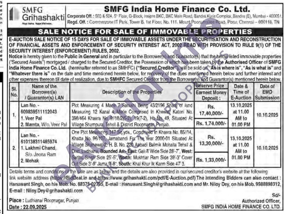 Plot Measuring 147 Sq.yds., Comprised In Khasra No. 85//14, Khatta No. 96/107, Jamabandi For The Year 2000-01 Situated At Village Shanewal-2, H. B. No. 220 Aabadi Balmik Mohalla Tehsil & Distt. Ludhiana, Bounded As:-East: Galı 8' Wide Side 28-7, West: Sadhu Singh Side 25-5, North: Mukhtiar Ram Side 39-3" Cover Out Side 3'-9 Jama 9-8", South: Khal Khur Ik Karm Side 47