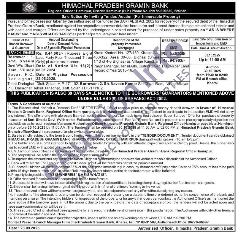 Auction on 30 October 2025 at 11:30 AM