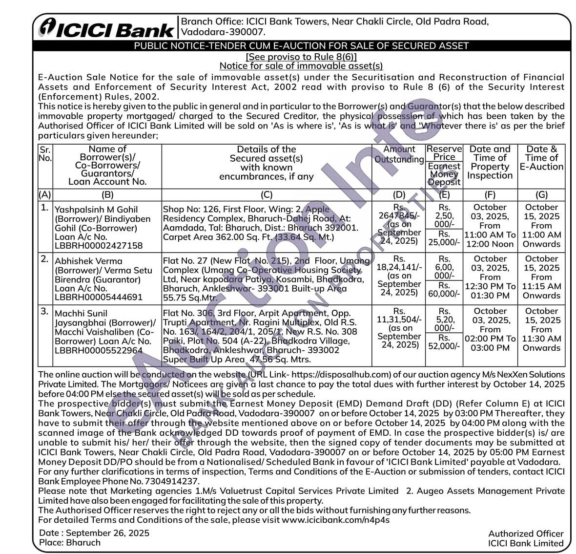 Auction on 15 October 2025 at 11:15 AM