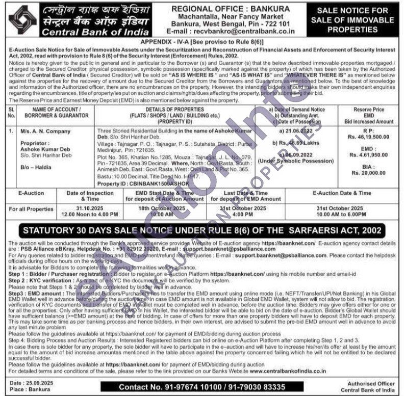 Plot No. 365, Khatian No. 1285, Mouza: Tajnagar, J. L. No. 079, Pin-721635, Area 39 Decimal. Where, North: Govt Rasta, South: Animesh Deb, East: Govt. Rasta, West: Own Land & Plot No. 365. Bastu: 10,00 Decimal, Title Deed No. 1-4917.