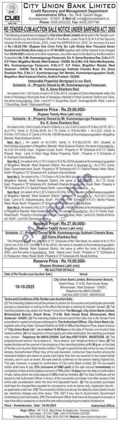 The Property as per the 2nd Item of "D" Schedule of the Title Deed. An extent of Ac.0.75% Cents out of Ac.3.01 Cents in R.S. No.36/3A, the same is situated at Kummarapurugupalem, Mogalthuru Mandal, West Godavari District, the same is within the limits of Mogalthuru SRO, and the same is bounded by East Sarkar Land, South Property in "C" Schedule of K. Parasuram, West Road, North: Property in 'D' Schedule of K. Murali Krishna.