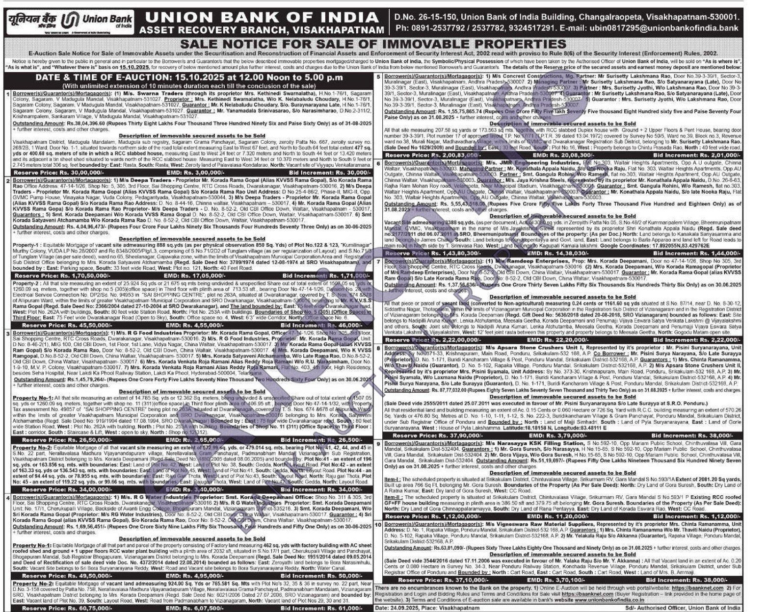 10) All that Vacant land in an extent of Ac. 0.20 Cents or 0.080 Hectare in Survey No. 34-3, Near Ponduru Railway Station, Konchada Revenue Village, Ponduru Mandal, Srikakulam District, under Sub Registrar Office of Ponduru and Bounded by: North: Cart Road, East: Cart Road, South: Cart Road, West: Land of Mrs. B. Ammaji