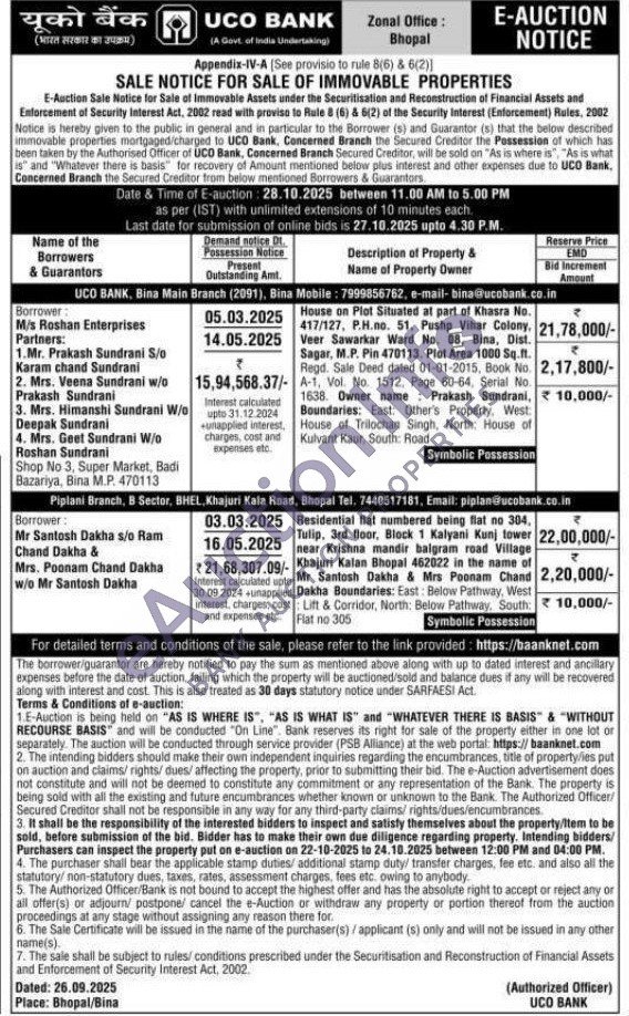 Residential flat numbered being flat no 304, Tulip, 3rd floor, Block 1 Kalyani Kunj tower near Krishna mandir balgram road Village Khajuri Kalan Bhopal 462022 in the name of Mr Santosh Dakha & Mrs Poonam Chand Dakha Boundaries: East: Below Pathway, West : Lift & Corridor, North: Below Pathway. South: Flat no 305