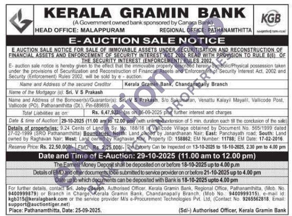 9.24 Cents of Land in Sy. No. 188/16 in Vallicode Village obtained by Document No. 565/1999 dated 27-02-1999 ISRO Pathanamthitta