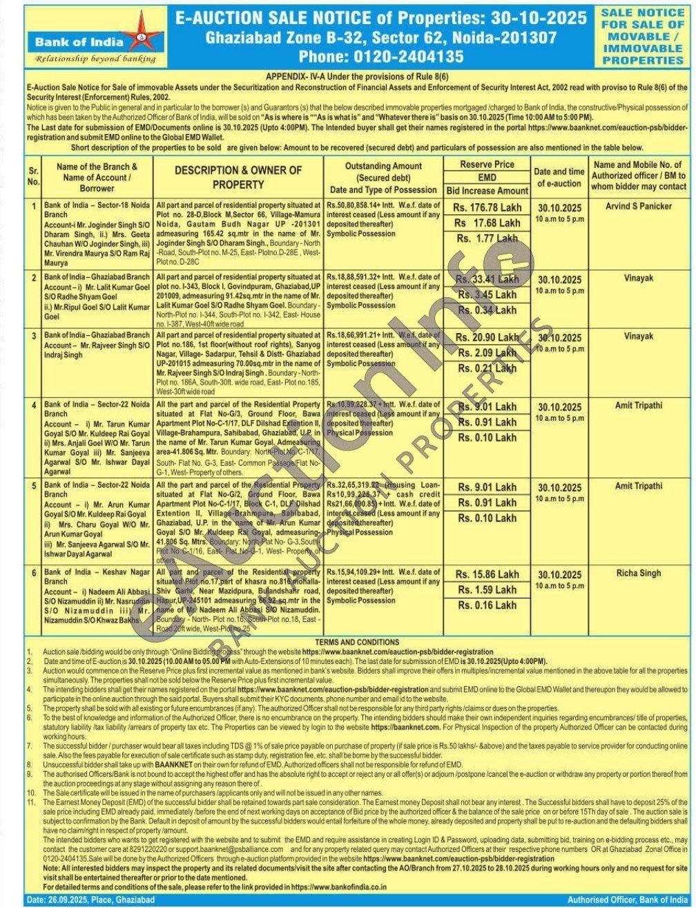 All part and parcel of residential property situated at Plot no.186, 1st floor without roof rights), Sanyog Nagar, Village-Sadarpur, Tehsil & Distt-Ghaziabad UP-201015 admeasuring 70.00sq.mtr in the name of Mr. Rajveer Singh S/O Indraj Singh. Boundary-North-Plot no. 186A, South-30ft, wide road, East-Plot no 185, West-30ft wide road