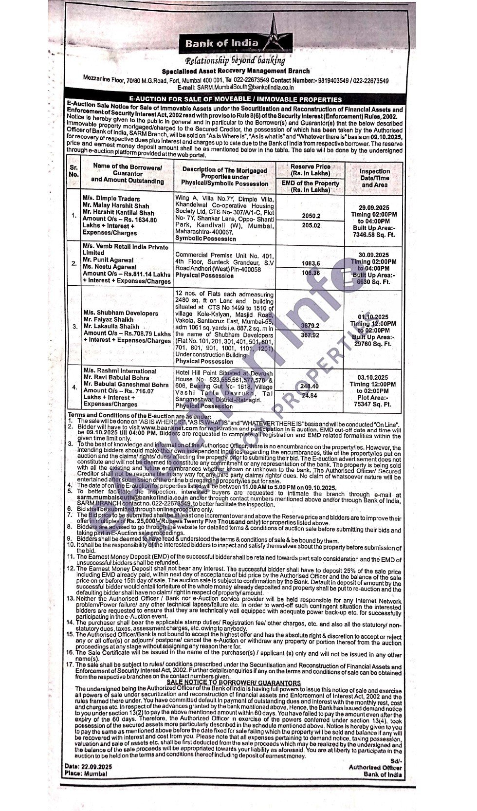 Commercial Premise Unit No. 401, 4th Floor, Sunteck Grandeur, S.V Road Andheri (West) Pin-400058 Physical Possession