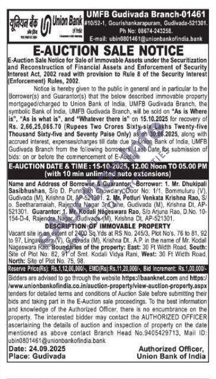 Vacant site in an extent of 2400 Sq. Yds at RS No. 245/3, Plot No's. 76 to 81, 92 to 97, Lingavaran (V), Gudivada (M), Krishna Dt., A.P. in the name of Mr. Kodal Nageswara Rao. Boundaries of the property: East: 30 Ft Width Road, South: Site of Plot No. 82, 91 of Set. Kodali Vidya Rani, West: 30 Ft With Road, North: Site of Plot No. 75, 98.