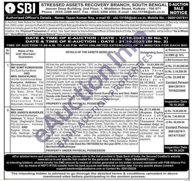 All that the self-contained Flat No. "303" on the 3rd floor, North-East corner of Block- II of the building comprised in the residential complex named and styled "KESHAB DHAM COMPLEX" consisting of 2 (two) bedrooms, 1 (one) kitchen. 2 (two) toilets, 1 (one) Hall and 1 (one) balcony, constructed upon the demarcated part or portions of the lands described in the First Schedule above written. containing an area measuring about 750 SQ.FT, be the same a little more or less including super built up area together with undivided proportionate impartible share of land underneath in the building and the lands comprised within Bally Municipality Premises No. 80. Lala Babu Shire Road, P.O- Belur Math, Bally, District-Howrah-711202, Ward No 12.The property stands in the name of Shri Sumit Kumar Bose and Smt. Rakhi Kundu vide Deed No. 03747 for the year 2010 registered in book-1, CD Volume No. 17, page from 1205 to 1243 at ADSR, Howrah, West Bengal.