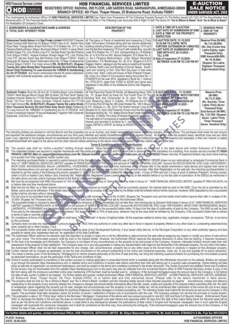As That Place And Parcel Of Flat No. 4A Memuning About 1506 1 Sq Ft. (Super Built Up Area) On The Fourth Floor Of The Building Buit And Constructed Al Or Upon The Plot Of Land Measuring About 5 Cotahs, 15 Chinacks And 37 5. Ft Fuming Part Of Dag No. 18 Under Khatian No. 100 in MU & PS Golabari JL. No. 22 In The District Howrah Lying And Stuated At Or Upon Art Presently Known And Numbered As Muriopal Holding No. 112. Sakis School Road Under Muncipal Ward No. 12 Witles The Limits Of Howrah Municipal Corporation The said deed of Conveyance registered in the office of ADSR Howrah and recorded in its Book no 1, volume no 0502-2020 pages 259765 to 259797 as being no 050207473 to the the year