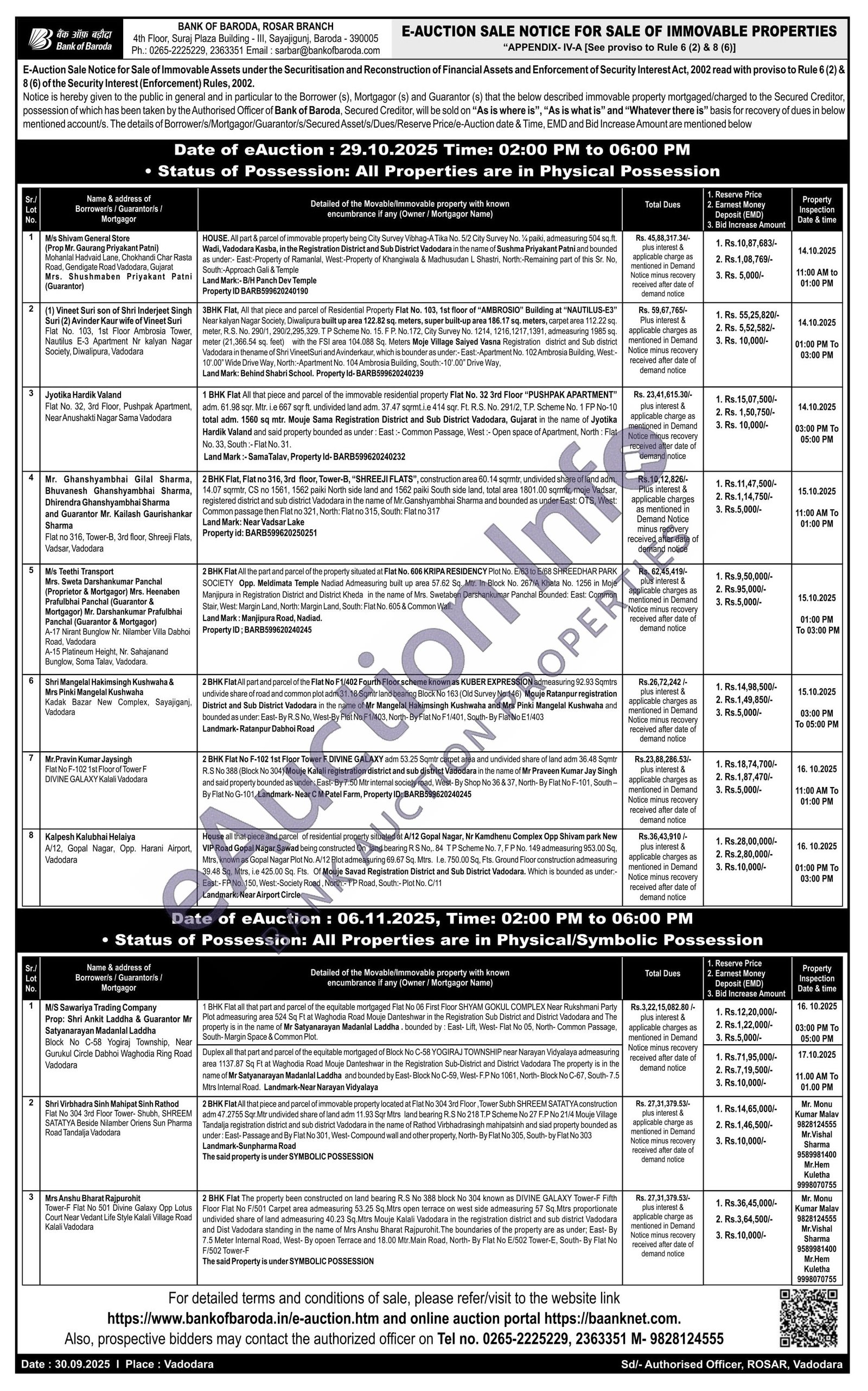 2 BHK Flat All that piece and parcel of immovable property located at Flat No 304 3rd Floor, Tower Subh SHREEM SATATYA construction adm 47.2755 Sqr. Mtr undivided share of land adm 11.93 Sqr Mirs land bearing R.S No 218 T.P Scheme No 27 F.P No 21/4 Mouje Village Tandalja registration district and sub district Vadodara in the name of Rathod Virbhadrasingh mahipatsinh and siad property bounded as under: East-Passage and By Flat No 301, West-Compound wall and other property, North-By Flat No 305, South-by Flat No 303 Landmark-Sunpharma Road The said property is under SYMBOLIC POSSESSION