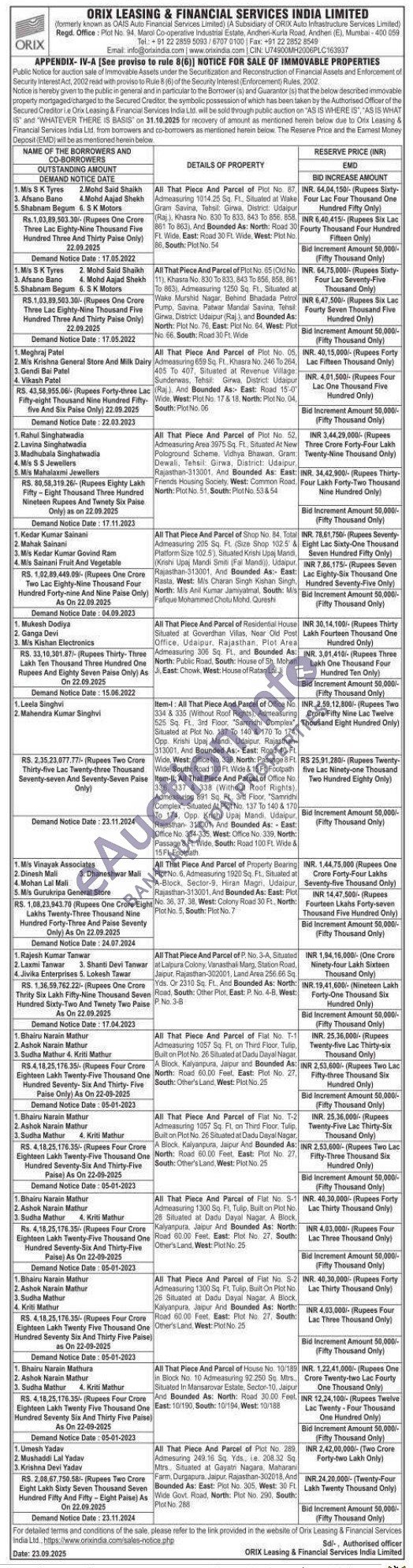 All That Piece And Parcel of Flat No. T-1 Admeasuring 1057 Sq. Ft, on Third Floor, Tulip, Built on Plot No. 26 Situated at Dadu Dayal Nagar, A Block, Kalyanpura, Jaipur and Bounded As: North: Road 60.00 Feat. East: Plot No. 27. South: Other's Land, West: Plot No. 25
