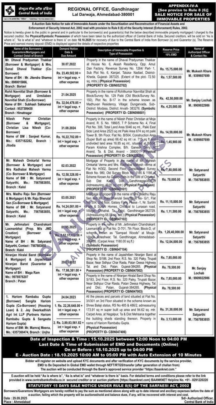 Property in the name of Nilesh Peter Christian at Moje Anand, R. S. No. 1966/5, TP. Scheme No 4. Final Plot No. 306. Total Land Area 5046 sqmt. Paki East Side Land Area 2523 sq mi Paki Area 674 sq mi paiki Tower B, 5th Floor, Flat No. 8/604, Construction Area (Super Built up area) 66.42 sq mt Le. 715 sq ft and undivided land area 16.85 sq mt situated at B/504 Param Krishna Complex, Bh. Ganesh Dairy. At Anand, Ta & Dist. Anand 388001, (Physical Possession) (PROPERTY ID-CBIN228201)