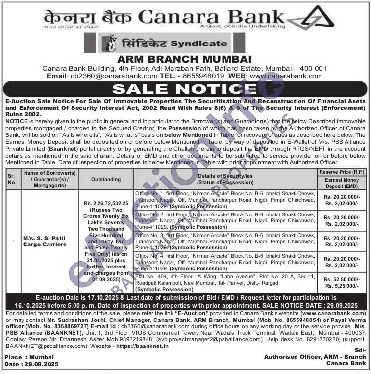 Office No. 3, first Floor, "Nirman Arcade" Block No. B-6, bhakti Shakti Chowk, Transport Nagar, Off. Mumbai Pandharpur Road, Nigdi, Pimpri Chinchwad, Pune-411029. (Symbolic Possession