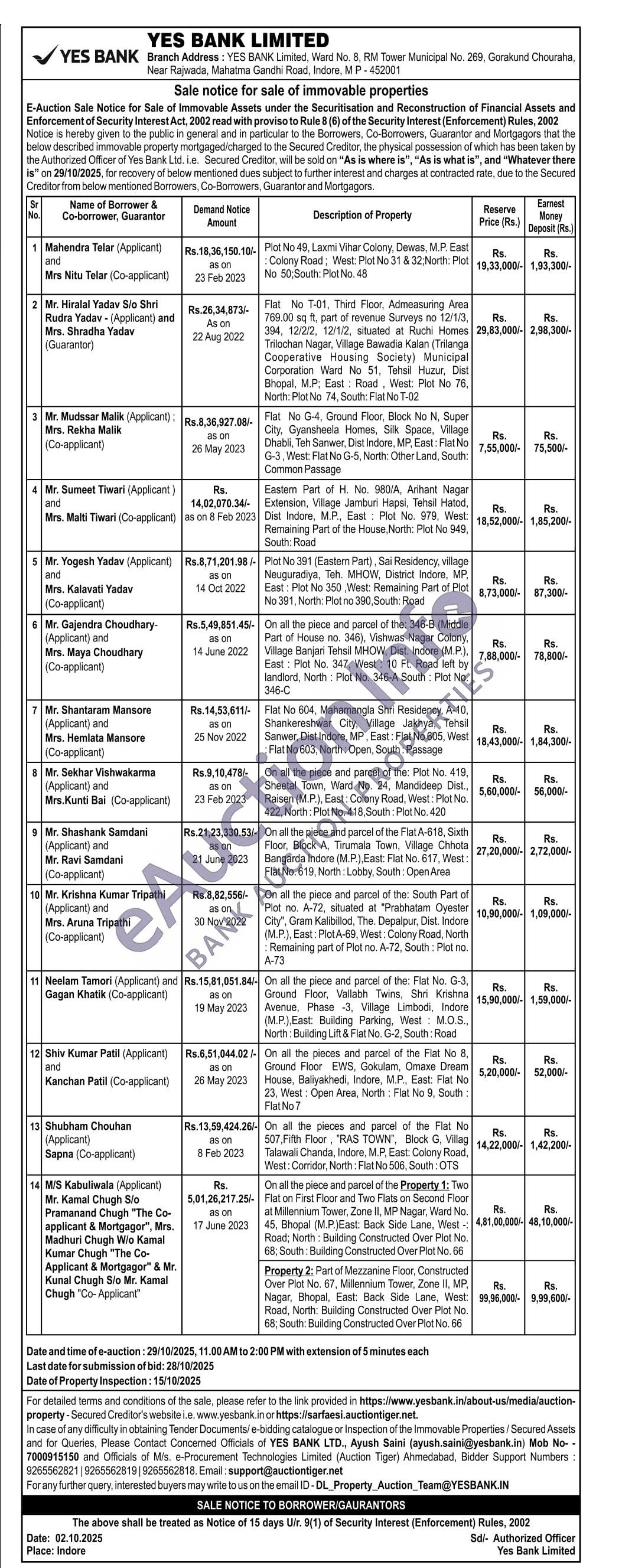 On all the piece and parcel of the: South Part of Plot no. A-72, situated at "Prabhatam Oyester City, Gram Kalibillod, The. Depalpur, Dist. Indore (M.P.), East: Plot A-69, West: Colony Road, North Remaining part of Plot no. A-72, South: Plat no. A-73