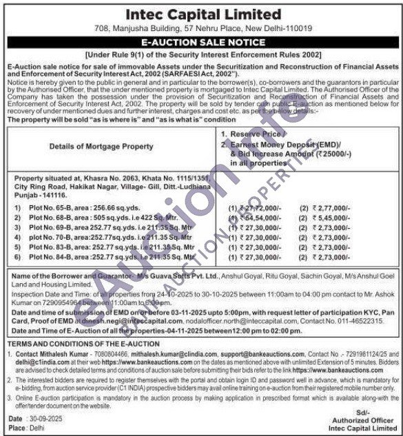 Property situated at, Khasra No. 2063, Khata No. 1115/1351, City Ring Road, Hakikat Nagar, Village Gill, Ditt.-Ludhiana Punjab-141116.