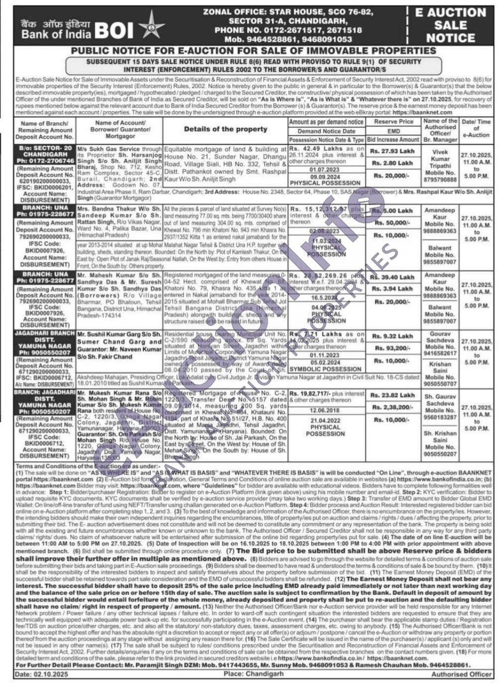 Registered Mortgage of House No. C-2. 1220/3, Transfer Deed No. 5157 dated 09.09.2014, measuring 200 Sq. yards comprised in Khewat No. 984, Khatauni No. 1194, part of Khasra No. 51//27, H.B. No. 400 situated at Mauja Jagadhri, Tehsil Jagadhri, Distt. Yamunanagar (Haryana). Bounded: On the North by: House of Sh. Jai Parkash, On the East by: Street, On the West by: House of Sh. Mehar Singh, On the South by: House of Sh Bhopal Singh