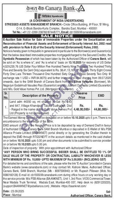 Land adm 44350 sq. mt situated at Gat No. 643 and 647, Village Khandpoli, Taluka Sudhagad, Dist -Raigad in the name of Mis Gold Value Homes Pvt Ltd (Property is not Demarcated)