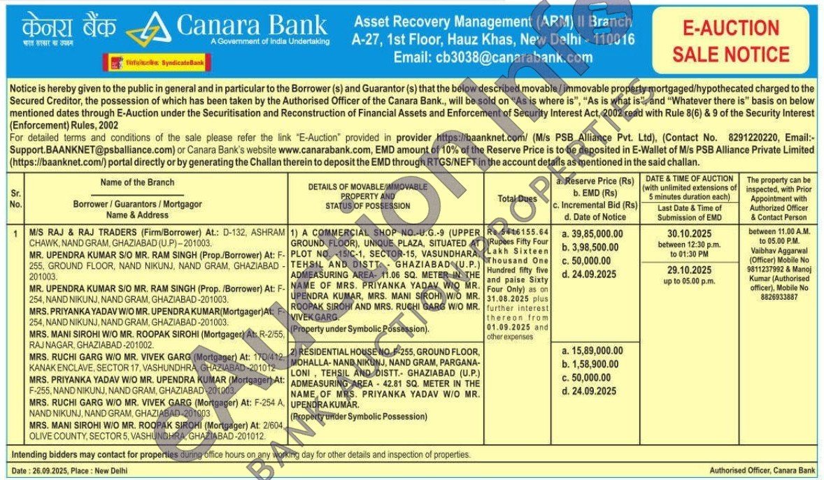 1) A COMMERCIAL SHOP NO.-U.G.-9 (UPPER GROUND FLOOR), UNIQUE PLAZA, SITUATED AT PLOT NO. -15/C-1, SECTOR-15, VASUNDHARA, TEHSIL AND DISTT. GHAZIABAD (U.P.) ADMEASURING AREA- 11.06 SQ. METER IN THE NAME OF MRS. PRIYANKA YADAV W/O MR. UPENDRA KUMAR, MRS. MANI SIROHI W/O MR. ROOPAK SIROHI AND MRS. RUCHI GARG W/O MR. VIVEK GARG.