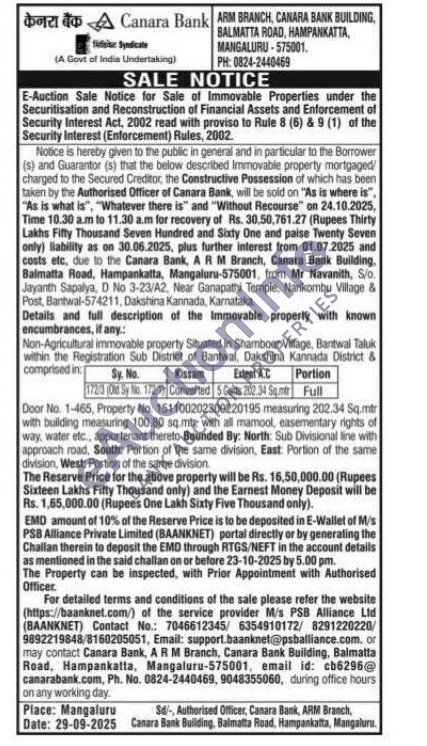 Non-Agricultural immovable property Situated in Shamboor Village, Bantwal Taluk within the Registration Sub District of Bantwal, Dakshina Kannada District & comprised in: