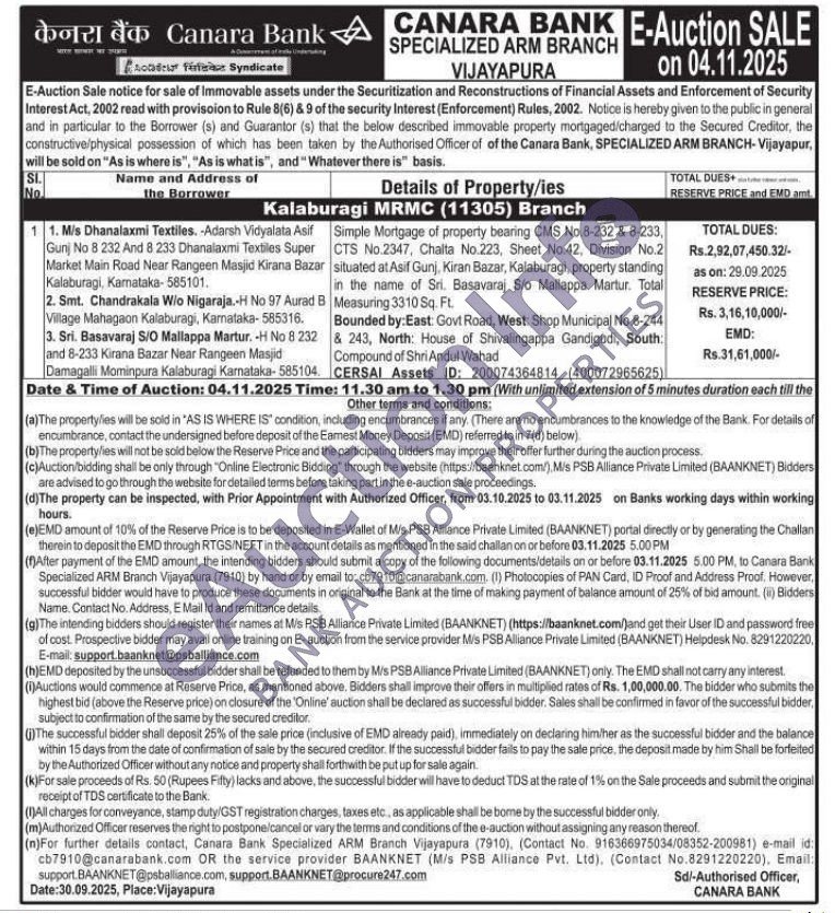 Simple Mortgage of property bearing CMS No.8-232 & 8-233, CTS No.2347, Chalta No.223, Sheet No.42, Division No.2 situated at Asif Gunj, Kiran Bazar, Kalaburagi, property standing in the name of Sri. Basavaraj Sio Mallappa Martur. Total Measuring 3310 Sq. Ft. Bounded by: East: Govt Road, West: Shop Municipal No.8-244 & 243, North: House of Shivalingappa Gandigudi, South: Compound of Shri Andul Wahad CERSAI Assets ID: 200074364814 (400072965625