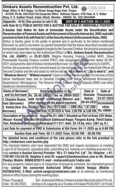 House No D1-386/1 Situated on Part of Arazi 225 Wake, Mauze-Kasari, Mohalla OM Prakash Sabhasad Nagar, Pargana & Tehsil Sadar, Dist. Allahabad (Prayagraj) Allahabad 211 011. Adm. 33.74 Sq. mtrs. (361 sq. ft.)