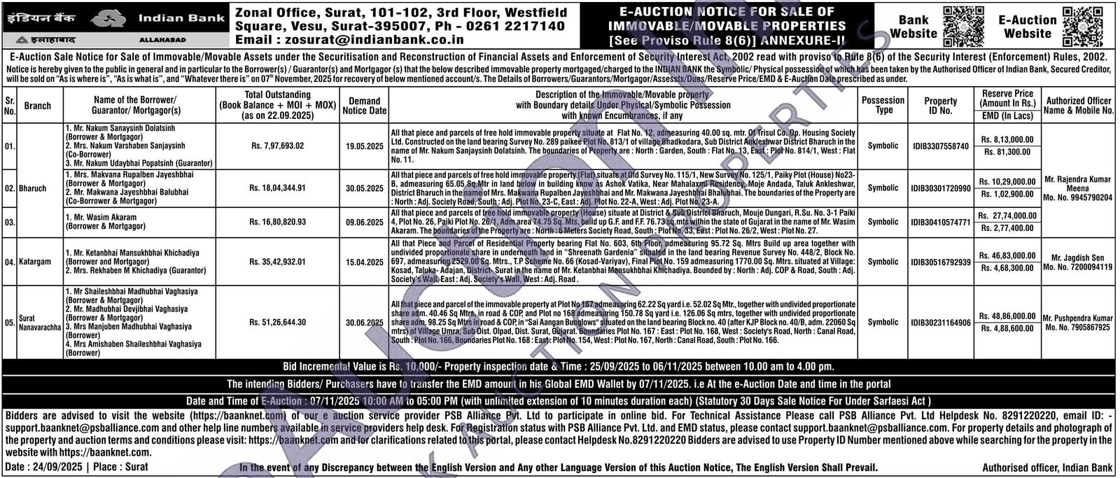 All that Piece and Parcel of Residential Property bearing Flat No. 603, 6th Floor, admeasuring 95.72 Sq. Mtrs Build up area together with undivided proportionate share in underneath land in "Shreenath Gardenia" situated in the land bearing Revenue Survey No. 448/2, Block No. 697, admeasuring 2529.00 Sq. Mtrs., T.P Scheme No. 66 (Kosad-Variyav), Final Plot No. 159 admeasuring 1770.00 Sq. Mtrs. situated at Village: Kosad, Taluka- Adajan, District-Surat in the name of Mr. Ketanbhai Mansukhbhai Khichadiya. Bounded by: North: Adj. COP & Road, South: Adj. Society's Wall, East: Adj. Society's Wall, West: Adj. Road