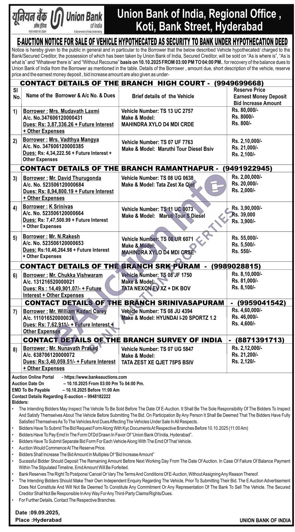 Auction on 10 October 2025 at 03:00 PM