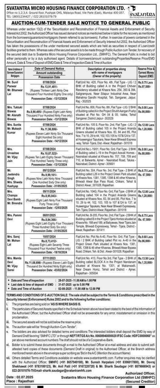 SMHFC (+91 8657949180), Mr. Suresh Harpalani (+91 8306017800), Mr. Devraj Shekhawat (+91 9783100123), Mr. Anil Patil (+91 9167220728