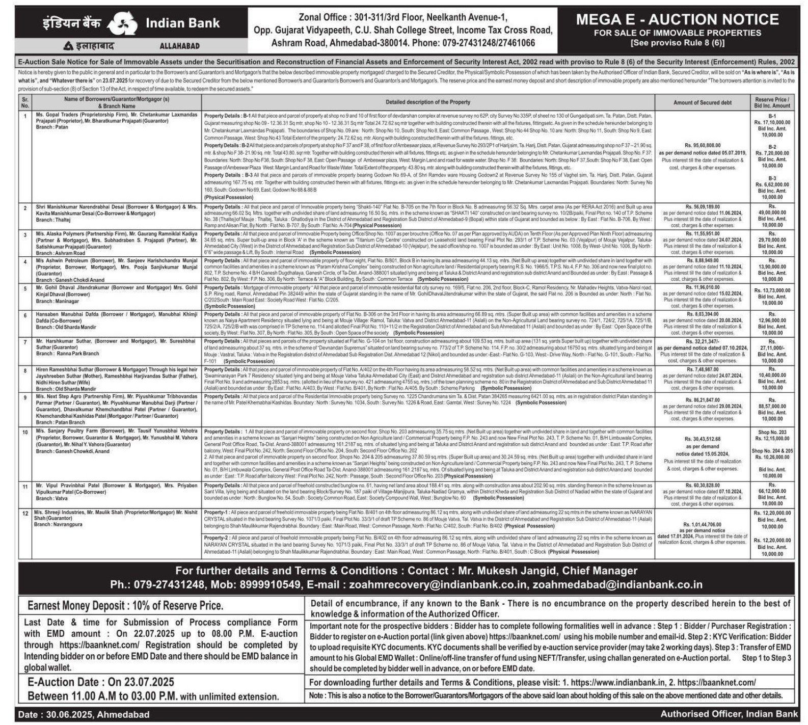 Property Details: 1. All that piece and parcel of immovable property on second floor, Shop No. 203 admeasuring 35.75 sq. mtrs. (Net Buit up area) together with undivided share in land and together with common facilities and amenities in a scheme known as "Sanjari Heights" being constructed on Non Agriculture land/Commercial Property being F.P. No. 243 and now New Final Plot No. 243, T. P. Scheme No. 01, B/H Limbuwala Complex, General Post Office Road, Ta-Dist. Anand-388001 admeasuring 161.2187 sq. mtrs. of situated lying and being at Taluka and District Anand and registration sub district Anand and bounded as under: East: T.P. Road after balcony, West: Final Plot No. 242, North: Second Floor Office No. 204, South: Second Floor Office No. 202