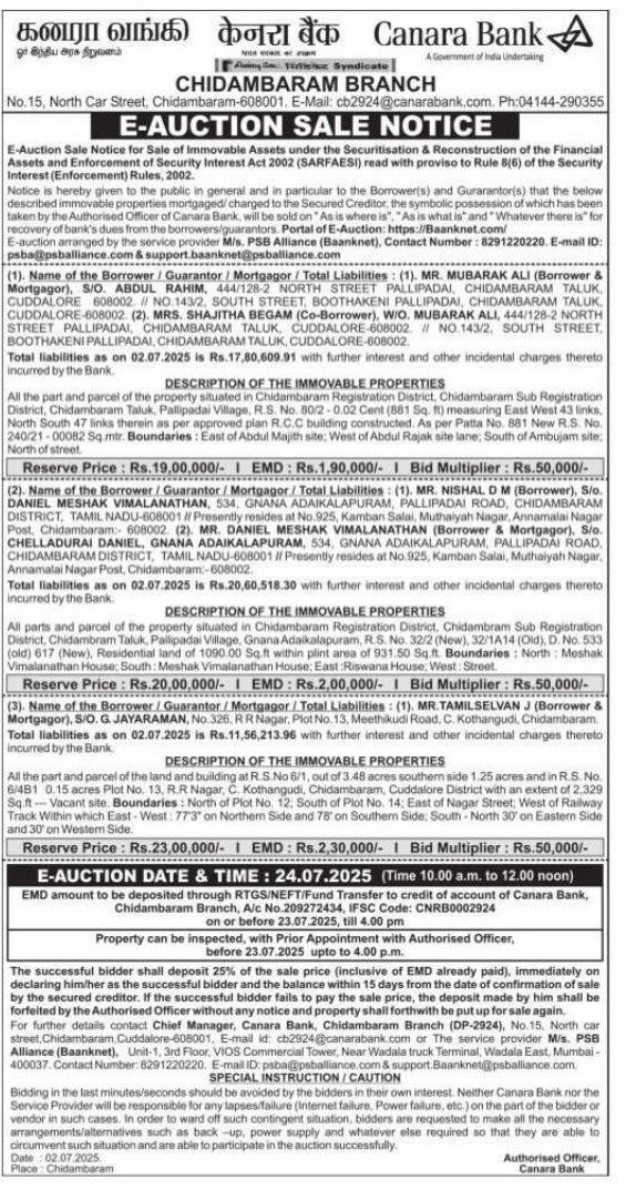 All the part and parcel of the land and building at R.S.No 6/1, out of 3.48 acres southern side 1.25 acres and in R.S. No. 6/481 0.15 acres Plot No. 13, R.R Nagar, C. Kothangudi, Chidambaram, Cuddalore District with an extent of 2.329 Sq.ft Vacant site. Boundaries: North of Plot No. 12, South of Plot No. 14; East of Nagar Street, West of Railway Track Within which East-West: 77'3" on Northern Side and 78' on Southern Side, South-North 30' on Eastern Side and 30 on Western Side.