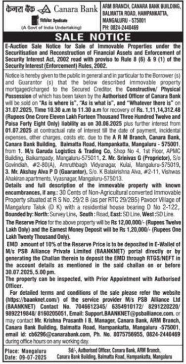 30 Cents of Non-Agricultural converted Immovable Property situated at R S No. 29/2 B (as per RTC 29/285) Pavoor Village of Mangaluru Taluk (DK) with a residential house bearing D No 2-122
